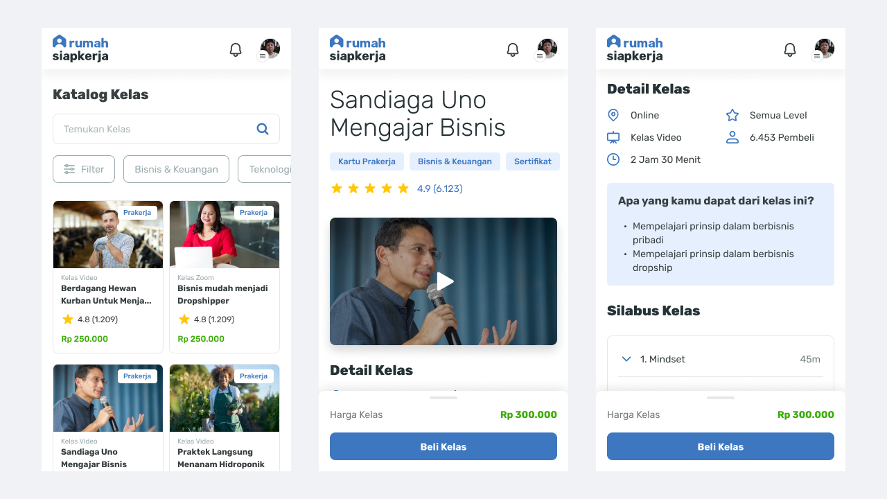 Partnering with the Indonesia Kartu Prakerja program, Rumah Siap Kerja embarked on a mission to empower the underprivileged through online education, igniting aspirations for entrepreneurship and career advancement. Our primary goal: reimagine the user journey and deliver an unparalleled user experience. My role involved deeply understanding user needs, crafting an engaging interface, and guiding the project through rigorous usability testing.